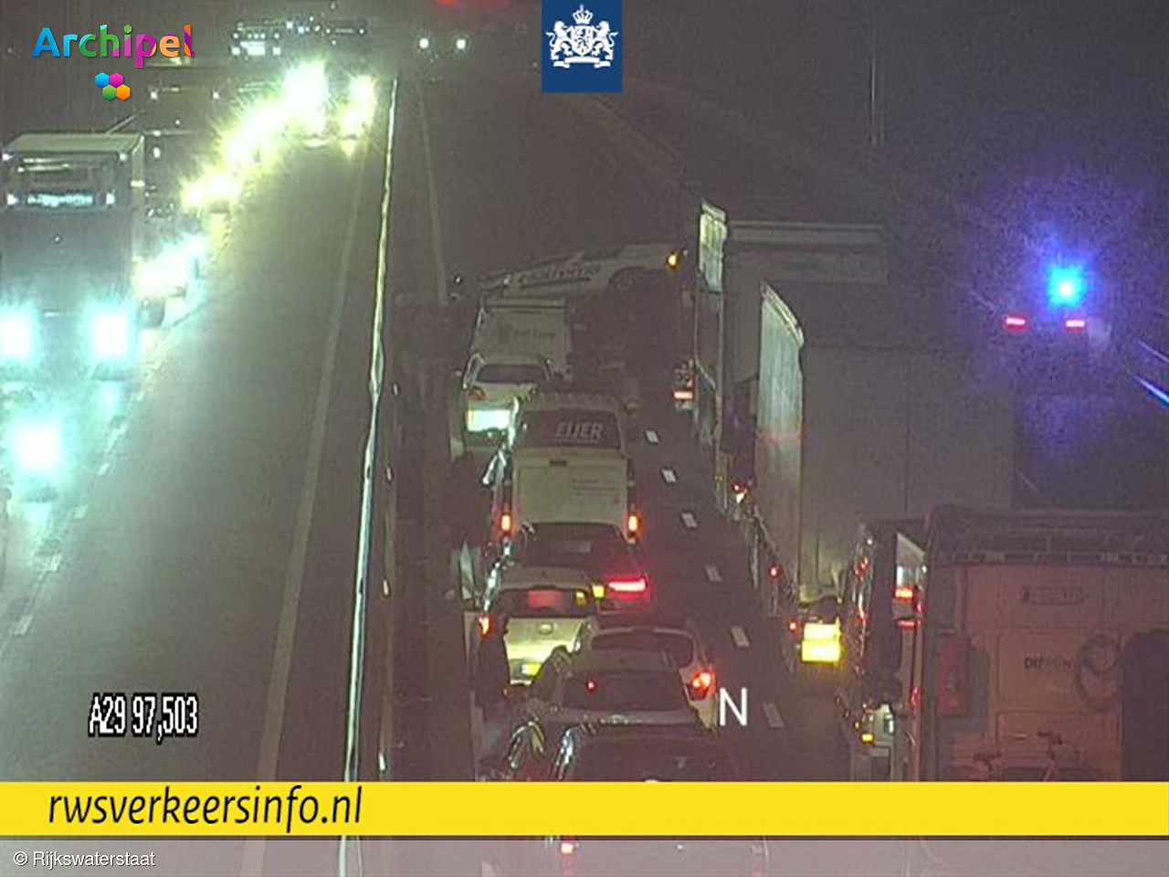Bron: Omroep Archipel - Het knooppunt Hellegatsplein (A29) tussen de Hoeksche Waard, Goeree-Overflakkee en Noord-Brabant is nog lang (deels) afgesloten vanwege een ongeluk van d..